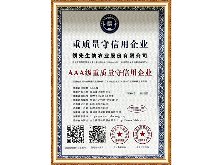 AAA級重質(zhì)量守信用企業(yè)